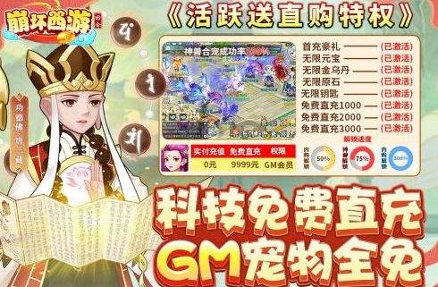 崩坏西游GM全宠刷充版是一款西游题材的回合制巨制手游。精美的画风、鲜明的门派特色、引人入胜的剧情贯彻整个游戏中。回合制玩家梦寐以求的福利全部免费送!登录即可领取十万真充、无级别装备、全部宠物等海量福利。
